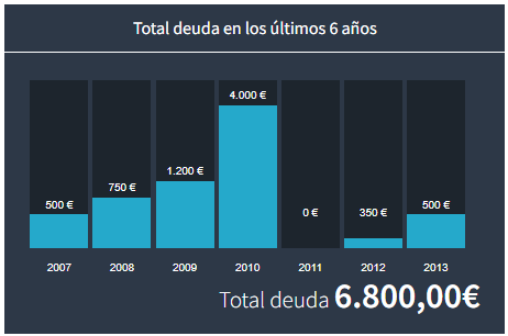 Incluye el importe total de tus deudas pendientes y su evolución en los últimos años. Este dato es clave para negociar acuerdos de pago y mejorar tu perfil financiero.