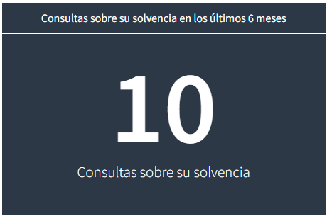 Muestra cuántas veces tu solvencia ha sido consultada por bancos y entidades financieras. Un exceso de consultas puede influir negativamente en la concesión de crédito.